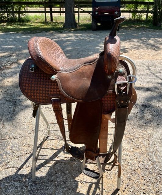 This saddle is in excellent condition. 14" seat 3yrs old. I'm not riding any more due to health. This saddle fits wide backed horses. It was for a 1150lb stout horse. #11 tree 39 degrees. The price is firm. Great saddle for a stout horse. Buyer pays shipping.